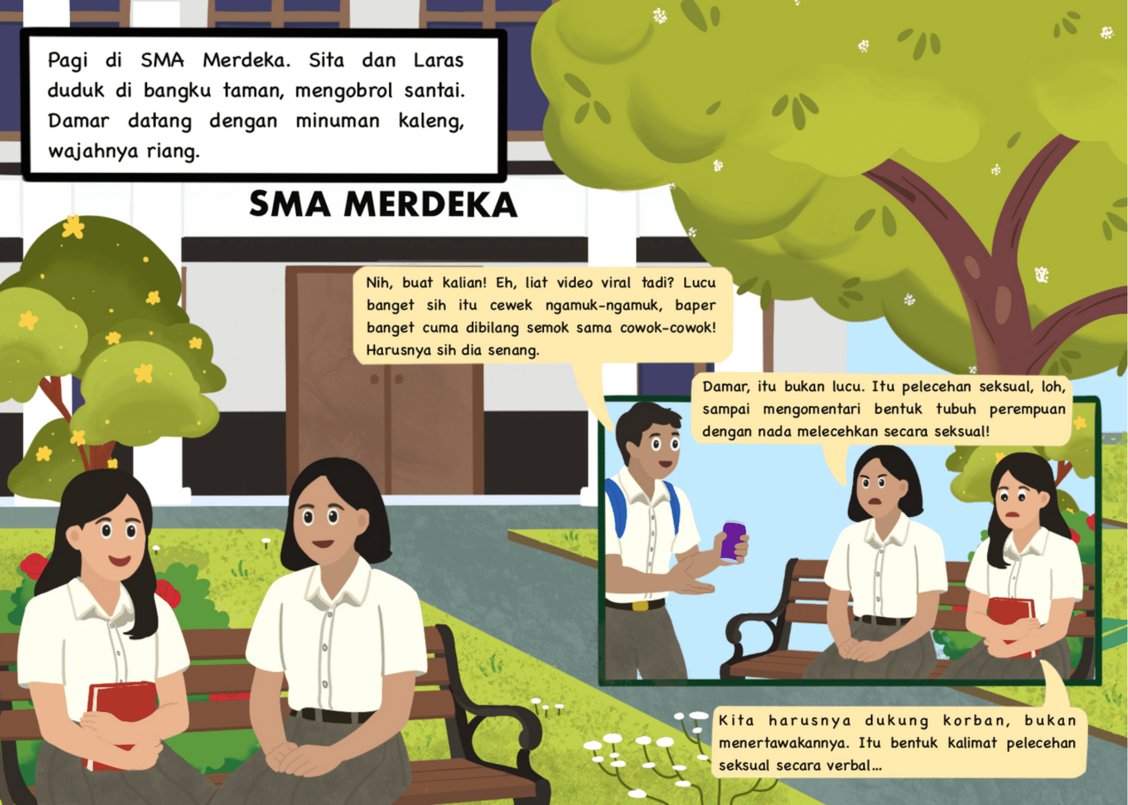 • Learn about sexual harassment in school settings through an engaging visual and storyline